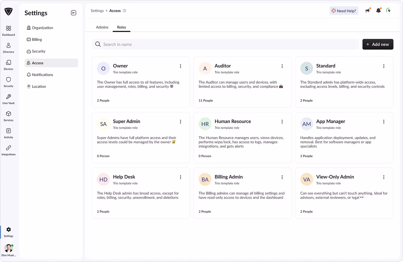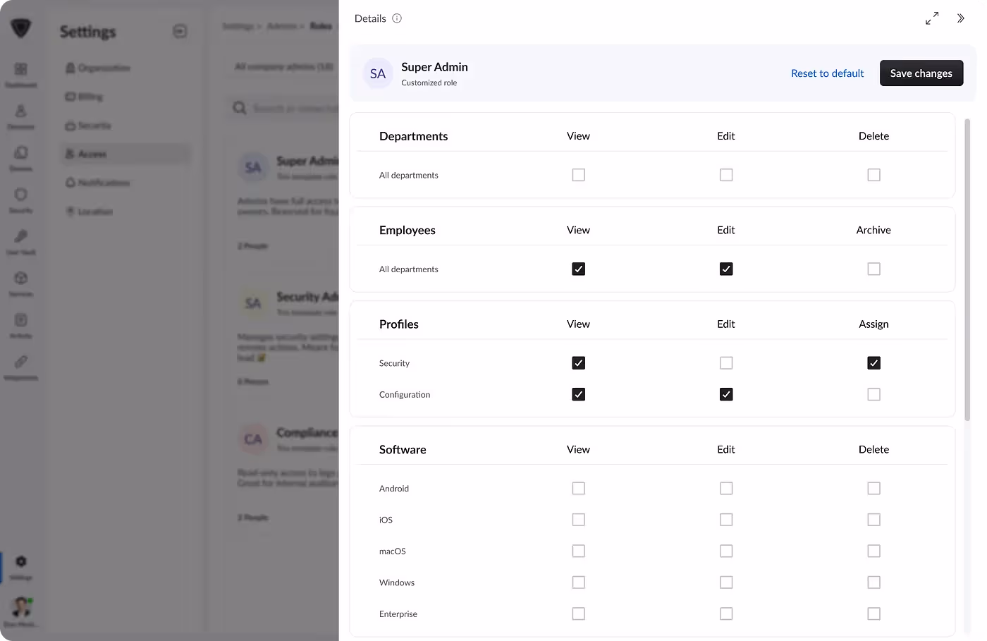 To reduce setup friction, we introduced predefined roles like Device Admin and Organization Owner.Each came with sensible, preset permissions so IT teams could assign them instantly and move forward.